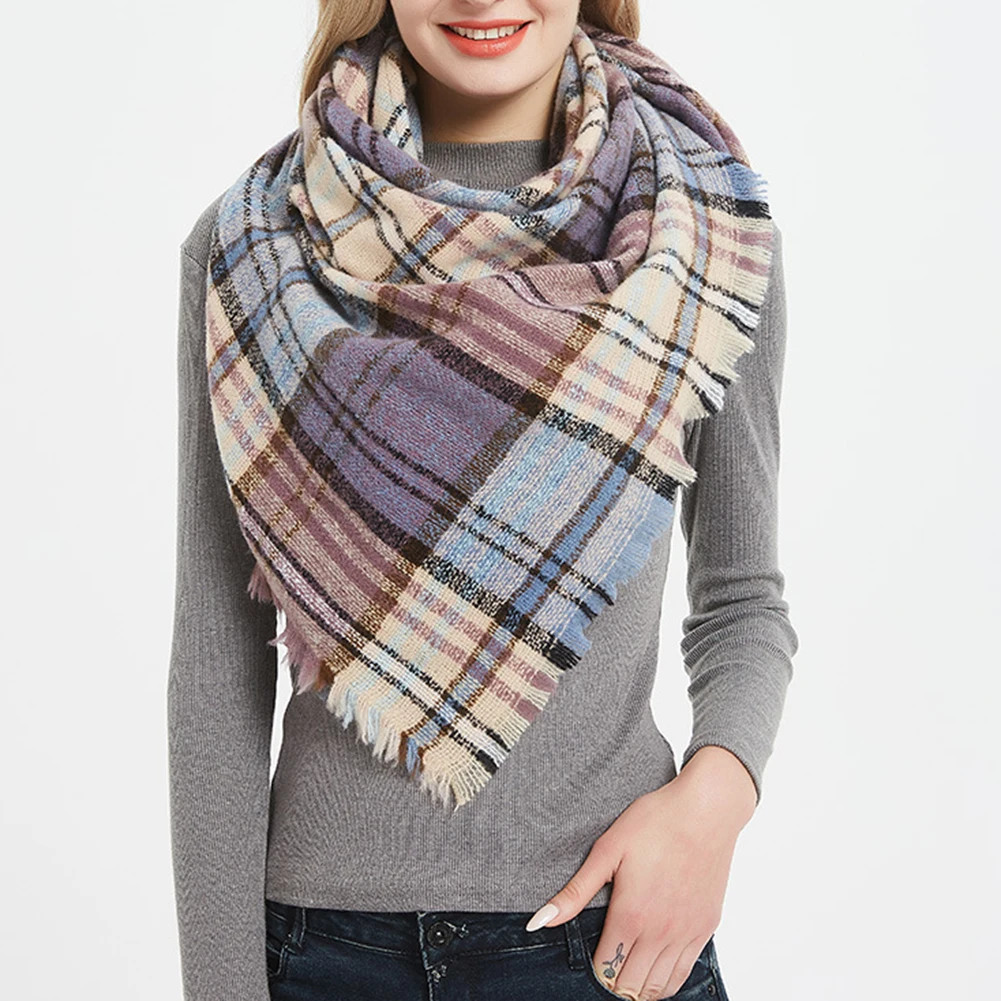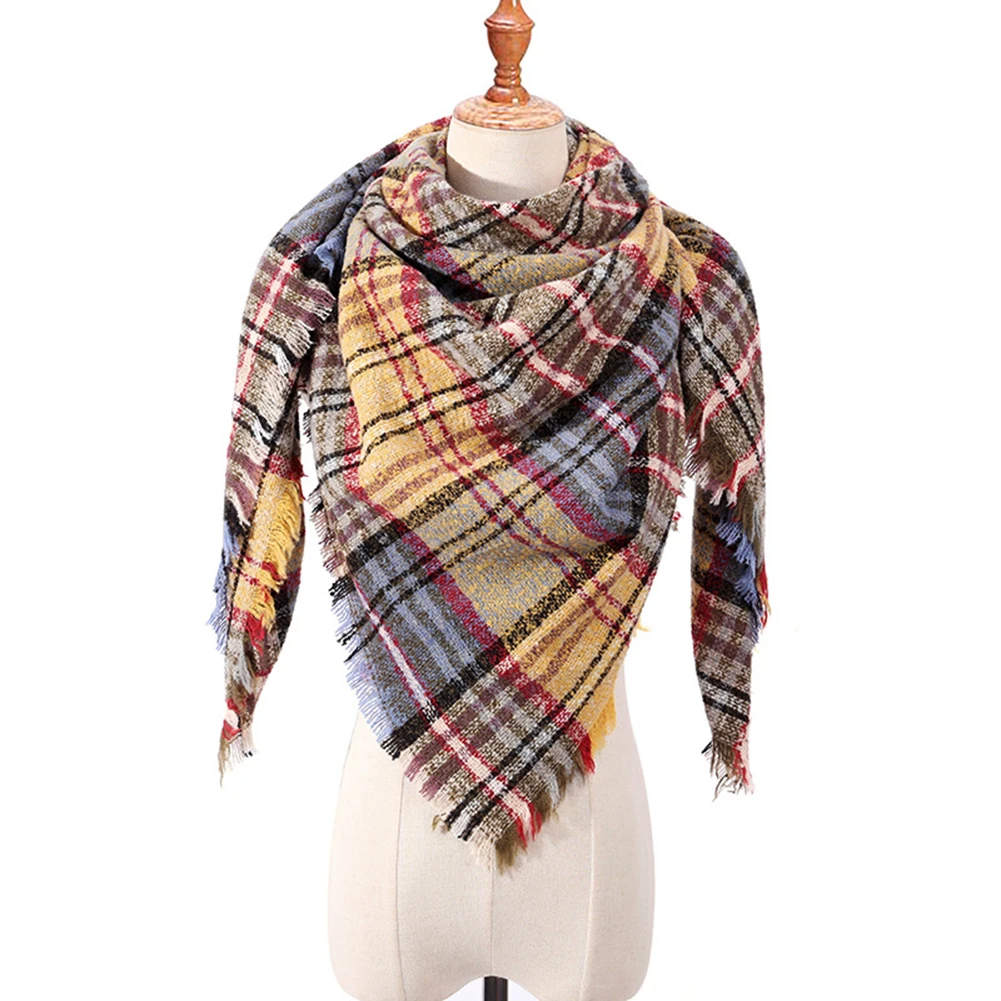 Зимний модный классический клетчатый шарф, шали, теплая накидка на шею, треугольное Бандажное одеяло, Женская Осенняя шаль, разные цвета