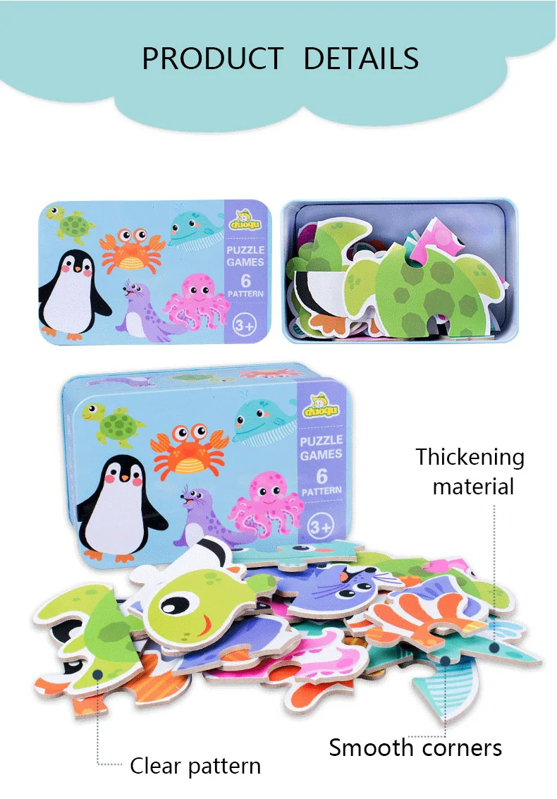 Детская креативная железная коробка, головоломка, животные, трафик, деревянная головоломка, шесть в одной игрушке