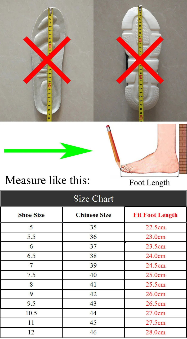 1. Китайский размер обуви отличается от вашей страны, в Китае, только длина стопы позволяет выбрать правильный размер обуви. 2. Не измеряйте длину обуви, не измеряйте длину стельки. 3. Зная точную длину вашей стопы, выберите размер из нашей таблицы размеров, если ваша стопа широкая или толстая, чем обычно, на один размер больше. 4. После того, как мы отправим вашу обувь, пожалуйста, не забудьте отследить вашу посылку и забрать ее вовремя, или она будет уничтожена, если с течением времени. 5. Если у вас есть какие-либо вопросы, пожалуйста, свяжитесь с нами, мы хотели бы помочь вам.