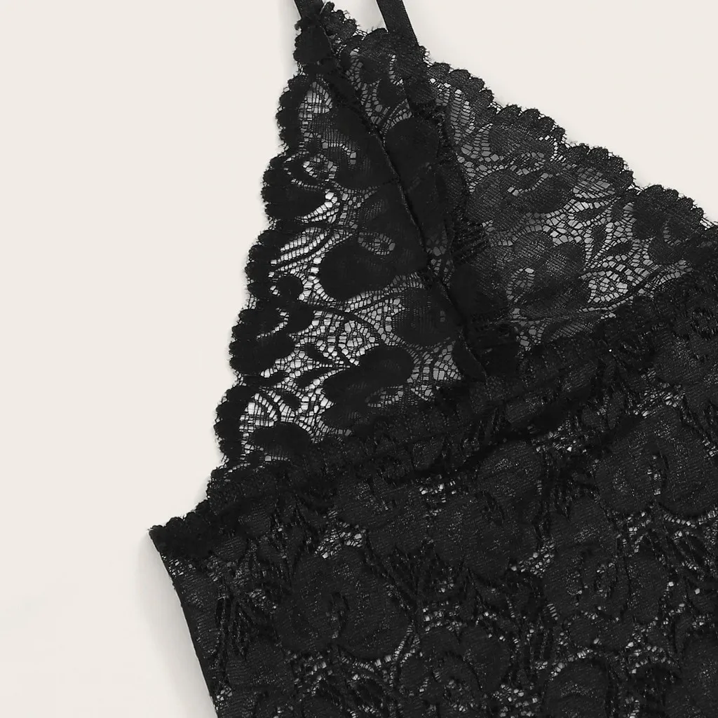 Женское сексуальное кружевное нижнее белье с цветочным рисунком Lenceria Mujer, Эротический бюстгальтер для Babydoll и атласные трусы с бантом, комплект одежды для сна, пижама, ночное белье