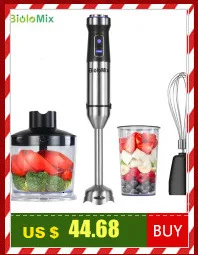 1. Полная погружная система смешивания: ручной блендер BioloMix поставляется в комплекте с насадками для смешивания, взбивания и измельчения. Экстра-вместительная чаша-измельчитель и чашка для смузи на 100% не содержат бисфенола А.