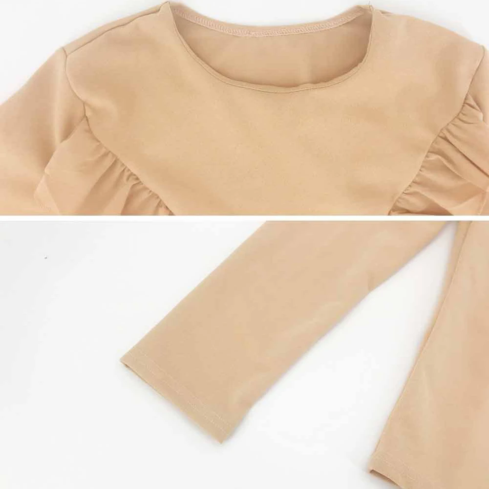Women Casual Solid Color O Neck Long Sleeve Stitching Ruffled Hem Slim Blouse