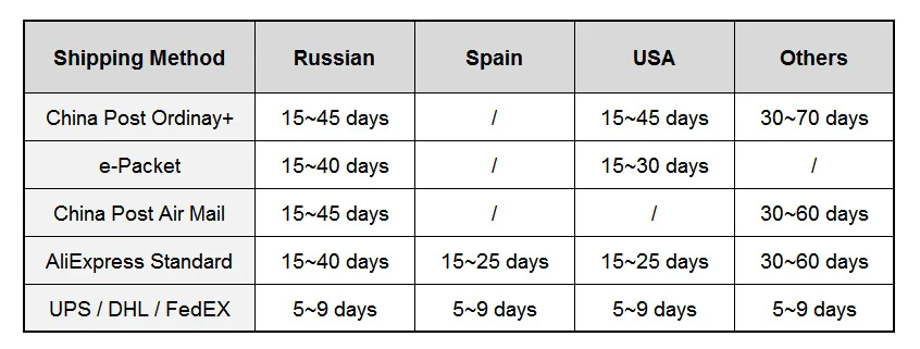 | Для 80% стран, когда ваш заказ превышает 120 долларов США, мы отправляем его черезЭкспресс-доставкаТакие как DHL Мы предлагаем наиболее приемлемые цены и услуги доставки |