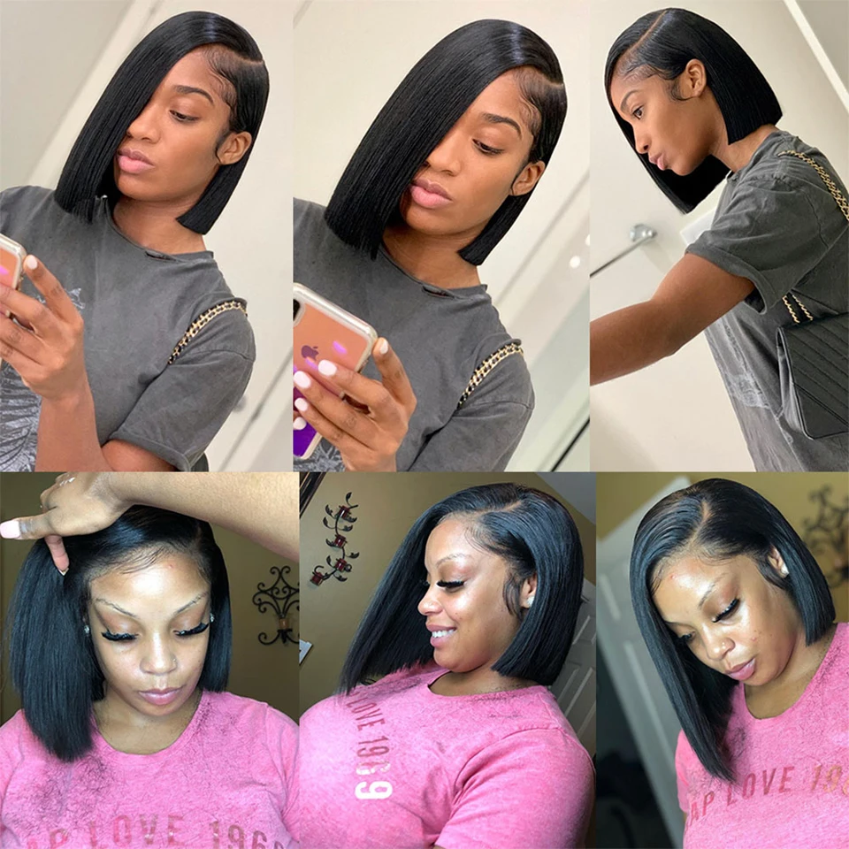 Парики с фронтальным кружевом, прямые парики с фронтальным кружевом, Короткие парики с фронтальным кружевом, парики из человеческих волос для черных женщин, бразильский парик без Реми, плотность 150%