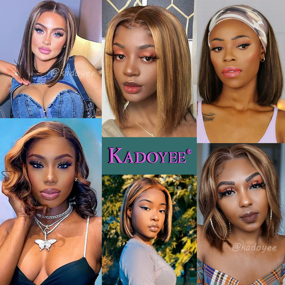 Термостойкие Короткие парик Мёд светлые прямые Синтетические волосы на кружеве парик человеческих волос бразильский эффектом деграде (переход от темного к 13x4 Фронтальная парики с детскими волосами Реми