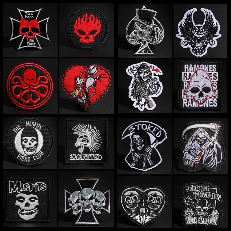 Череп Панк железные вышитые патчи для одежды DIY Grim Reaper полосы аппликация Одежда Наклейки железо на нашивки значки