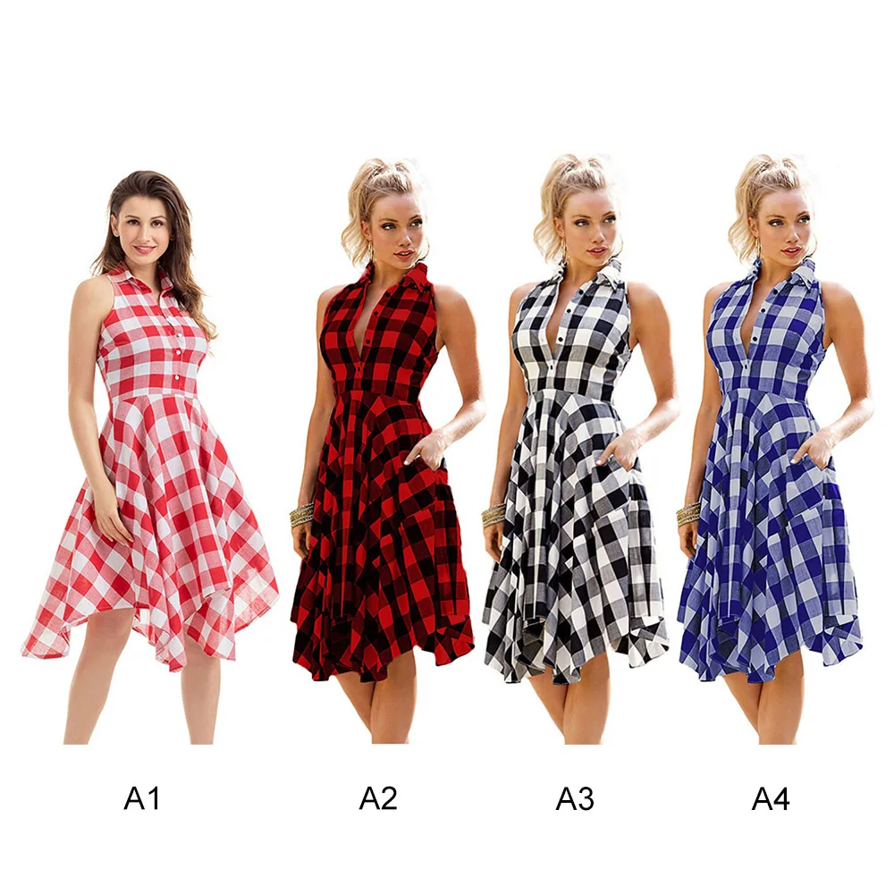 Женская майка, топ, жилет клетчатая с трапецеевидным силуэтом для Плиссированное Платье-рубашка; Сезон лето Повседневная темперамент отворотом сапоги до колена Длина пляжные вечерние рубашки