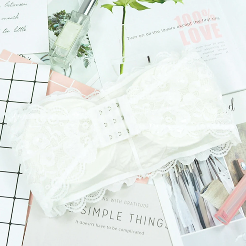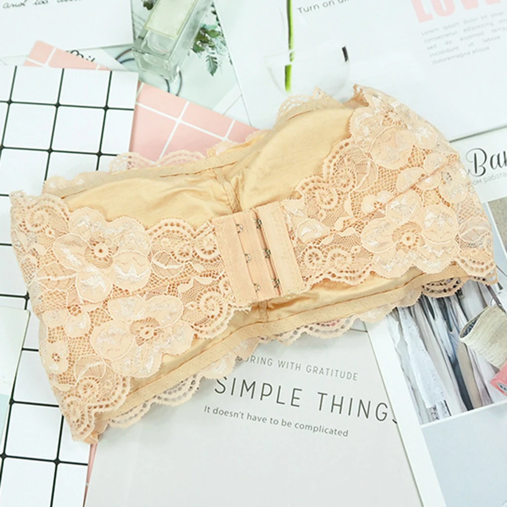 Женское кружевное сексуальное нижнее белье без бретелек, кружевной бюстгалтер с цветами, Бюстье на спине