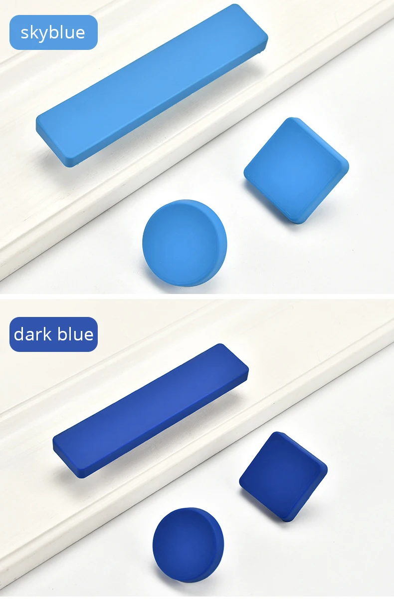 Brand: KAK Material: Zinc Alloy Base+ Environmental PVC Handle Color: Yellow/Sky Blue/Pink/Dark Blue Hole distance: single hole/96mm Round and Square Knobs: 40mm size Height: 25mm Package includes: 1 x Handle with screw