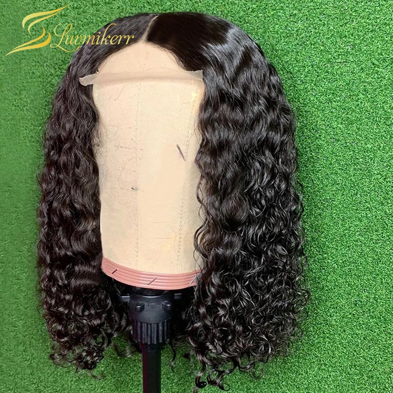 Парики из кудрявых волос Pixie Cut, 150 плотность, короткий парик из натуральных волос на фронте, 4x4, парик на шнурке с тупым вырезом