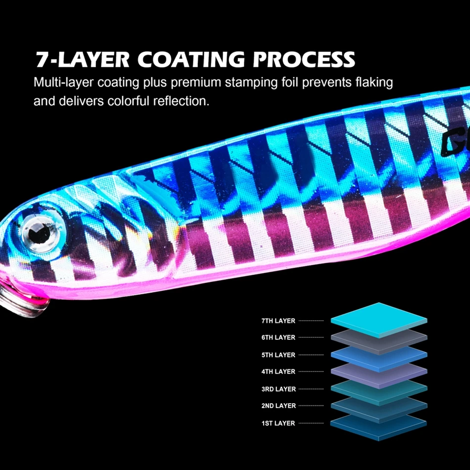 4. Импортная бумага для горячего тисненияПлюс 7 слоев с радиевым покрытиемСветоотражающий процесс окраски рыбы, поэтому приманка всегда поддерживает высокую яркость и высокую отражательную способность.