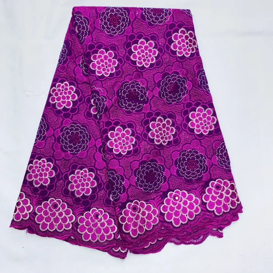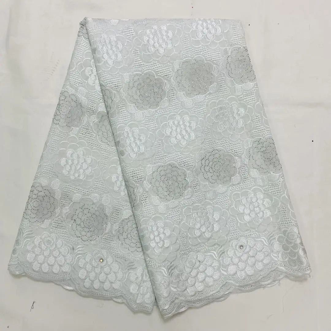 White African Cotton Lace Fabric 2020 High Quality Lace Tulle Cotton Swiss Voile Lace Fabrics with Stones Nigerian 5 Yards