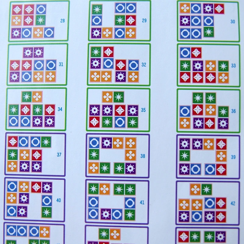 Как играть Каждый игрок делится на пять блоков одного цвета; Переверните карту, все плееры быстро запишут шаблон на карте; Тот, кто первым высказал шаблон, получает эту карту, И победителем в финальной игре является победитель.