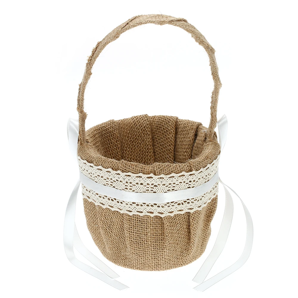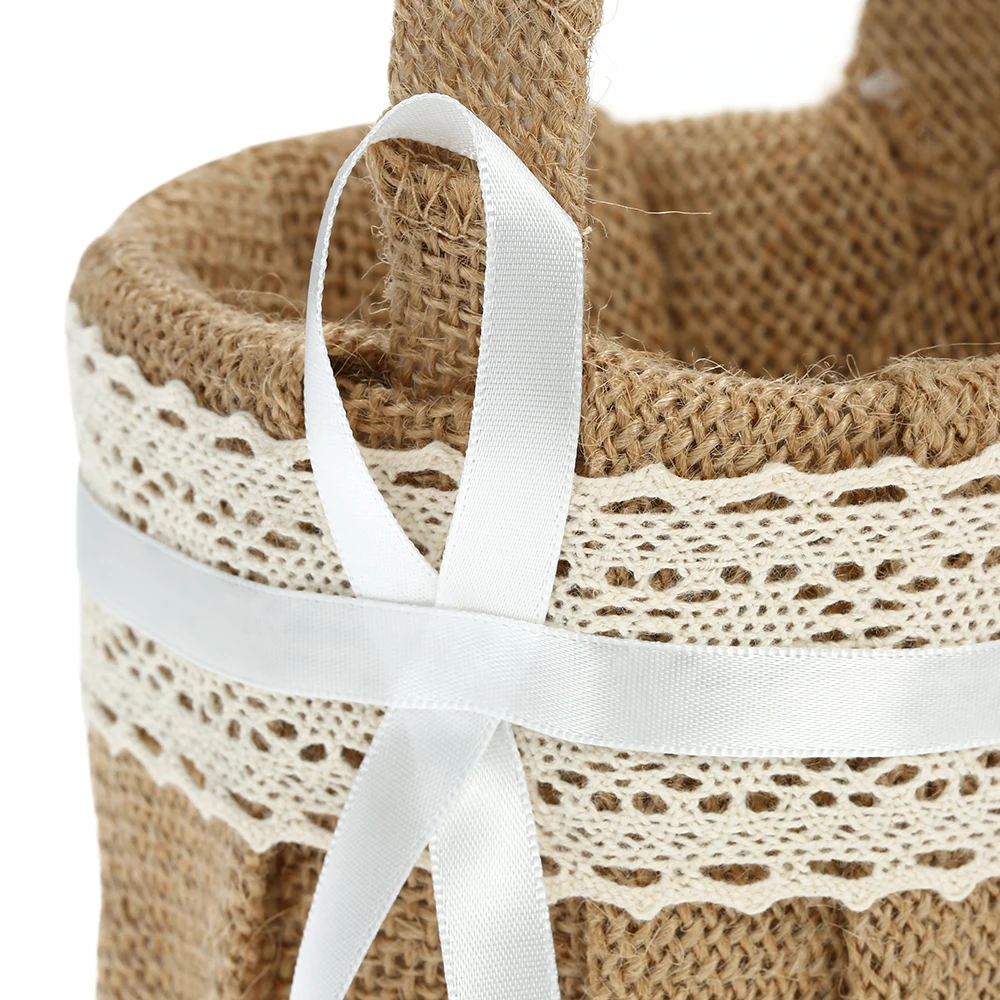 Плетеная Цветочная корзина, украшенная кружевом и атласными лентами, идеально подходит для свадьбы в деревенском стиле!