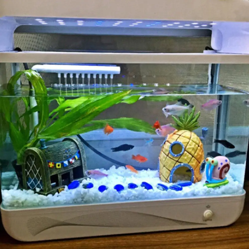 Этот дом в форме ананаса имеет отверстия для рыб, чтобы плавать и исследоватьУкрасьте свой аквариум все время с минимальным обслуживанием