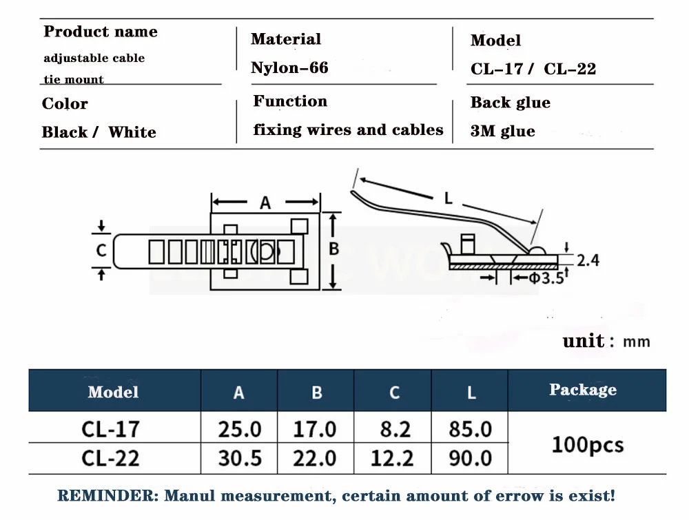 10 шт., крепления для кабельных стяжек, 18*25 дюймов Спецификация: Совершенно новый Цвет: белый Размер: 18 мм * 25 мм Нейлон 6,6 отмечен своей прочностью, электрической изоляцией и химической стойкостью, экономит время, прост в использовании, долговечен, очень сильной вязкостью, не легко упасть Легко устанавливается, обеспечивает используется для безопасность различных видов вещей с помощью кабельной стяжки Посылка входит: 10 шт регулируемый кабель базовые крепления, белый Примечание: Из-за ручного измерения, Есть погрешность в размере около 1-5 мм Цвет товара, отображаемый на фотографиях, может немного отличаться на мониторе вашего компьютера, так как мониторы не откалиброваны одинаково