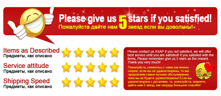 5. Если возникнут какие-либо проблемы во время покупок, время доставки или после получения товара, пожалуйста, свяжитесь с нами.