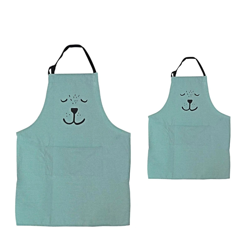 Cartoon Cotton Apron Cute Bear Parent and Child Apron, Matching Set Adult and Kid,Cooking,Baking,Painting,Coffee Shop,Party