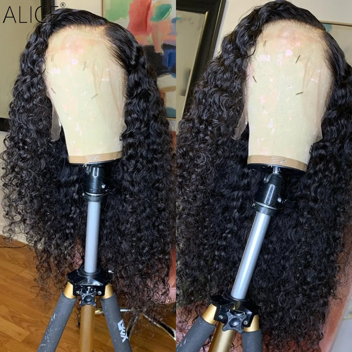 Волнистые волосы ALICE, фронтальные парики с детскими волосами, 130, 150 плотность, Реми, предварительно отобранные, бесклеевые, фронтальные, человеческие волосы, парики короткие