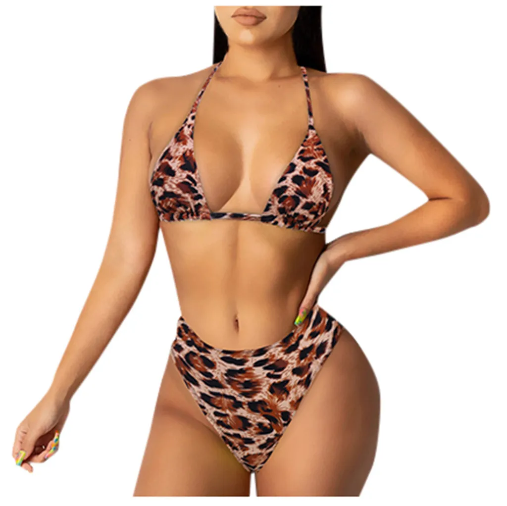 Женский комплект бикини из двух предметов с оборками и высокой талией