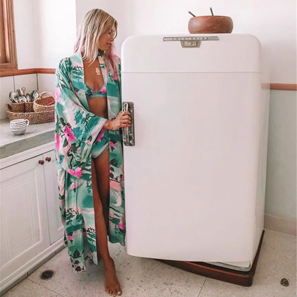 3.Вспышка Рукав, ЦветочныйПринтСвободное кимоно с поясомОчаровательно и привлекательно. Простой, но модный. Свободная посадка. Предотвращает Кожа Повреждение при игре на пляже.