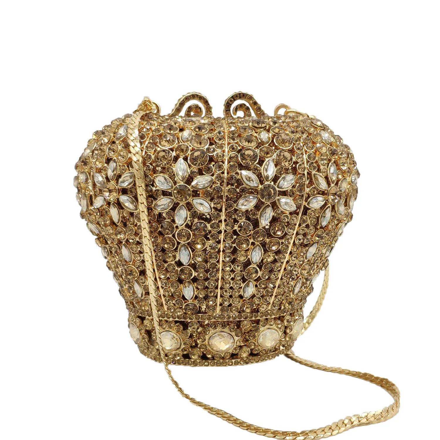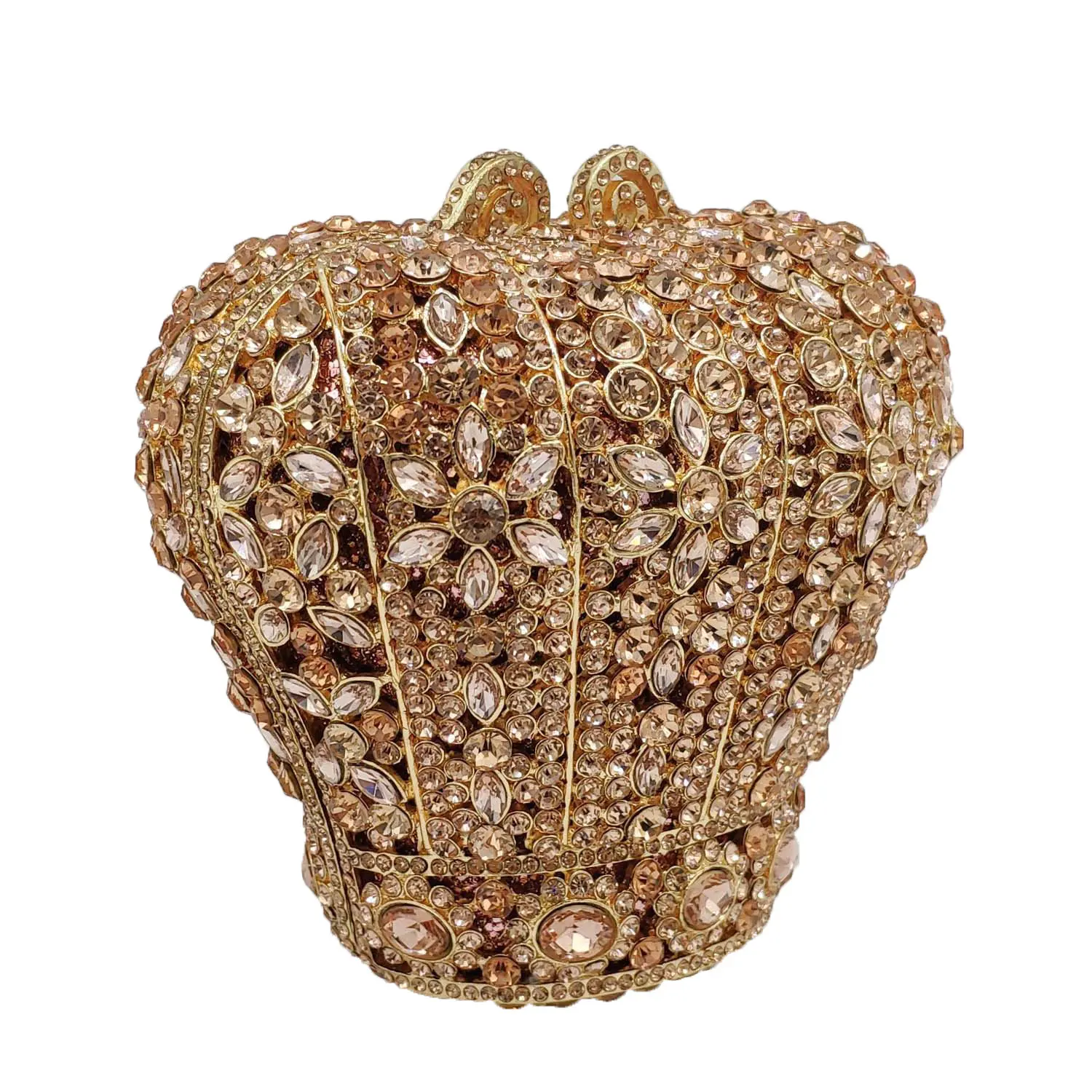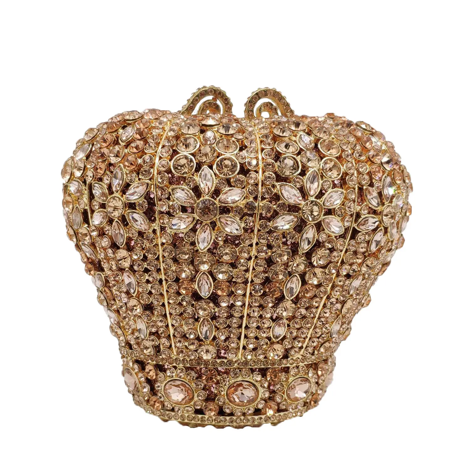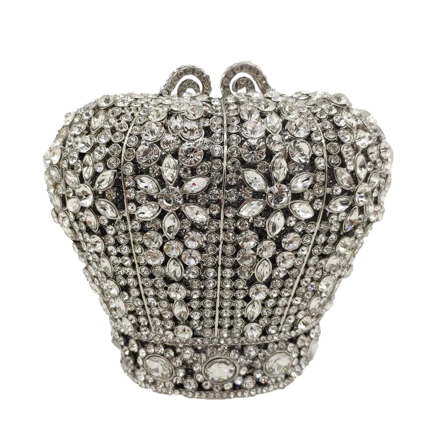 Royal Crown Shape Women Evening Minaudiere Bag Crystal Clutch Metal Hard Case Party Cocktail Purses and Handbags