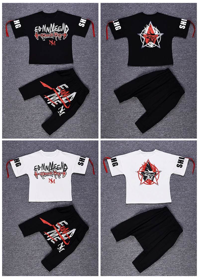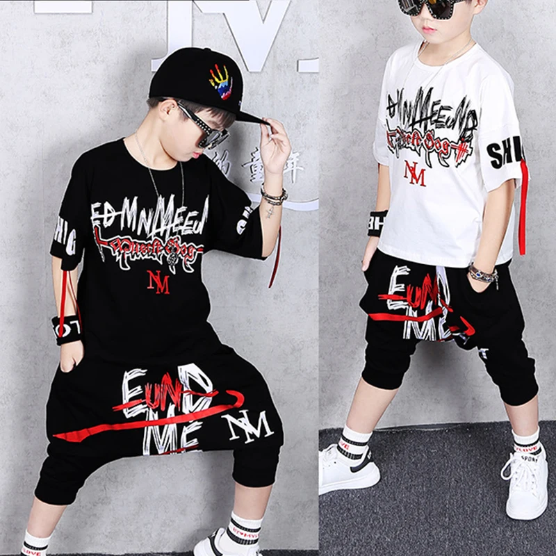 Комплект одежды для мальчиков; Повседневные спортивные костюмы для танцев в стиле хип-хоп; Комплект из двух предметов; Летняя детская футболка с принтом для мальчиков; Штаны-шаровары с принтом; Fathion 2020