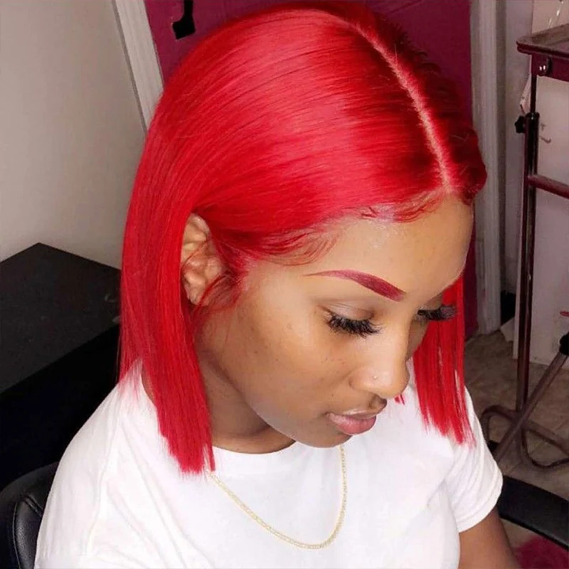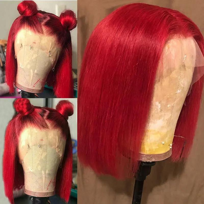 Красный боб парик бразильский 13X4 Короткий кружевной передний парик человеческих волос красный прямой парик волос Pinshair Remy Предварительно выщипанная линия волос 150% Плотность