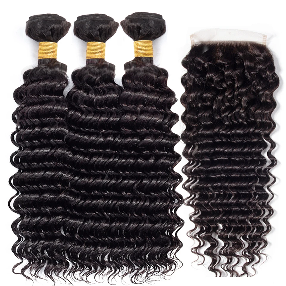 LEVITA волнистые пряди с закрытием бразильские волосы плетение Связки пряди с закрытием 100% человеческие волосы 3 пряди с закрытием не Реми перуанские волосы пряди с закрытием
