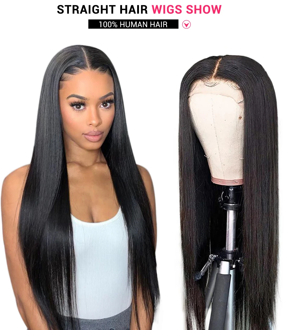 4x4 Lace Closure Wig Straight Lace Front Wig Pre Plucked Straight Lace Front Human Hair Wigs 150% 180% Remy Brazilian Hair Wigs