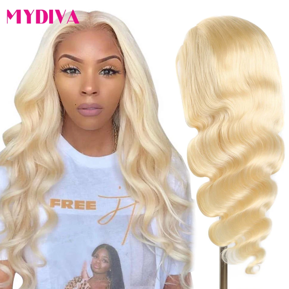 613 блонд кружевной передний парик бразильские объемные волны 13*1 5 дюймов средняя часть кружева передние человеческие волосы парики предварительно сорванные с волосами младенца Remy