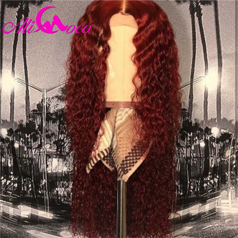 Али Коко 13x 4/4x4 99j кудрявые человеческие волосы парики 150% 99J/1B 27 Омбре бразильские Remy Curl кружевные передние парики предварительно сорванные для женщин