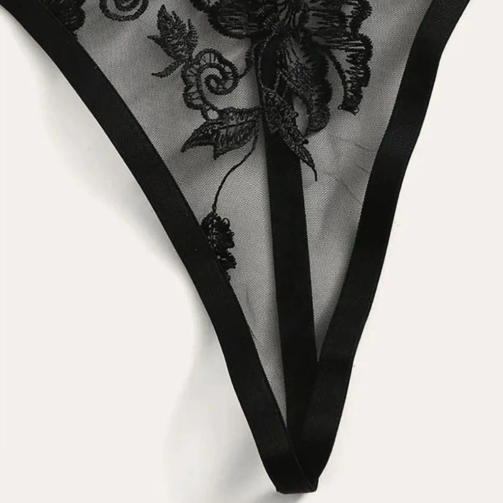 Sexy Exquisite Mesh Lingerie Bra+Halter+Garter+Briefs Set Babydoll Cut-Out Sleepwear