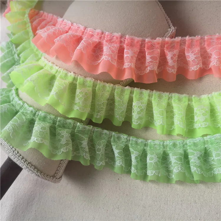5 см широкая розовая зеленая плиссированная шифоновая тканевая лента с бахромой 3d кружевной оборкой отделка платье куклы Воротник Шитье отделка Сделай Сам гипюр