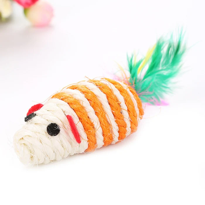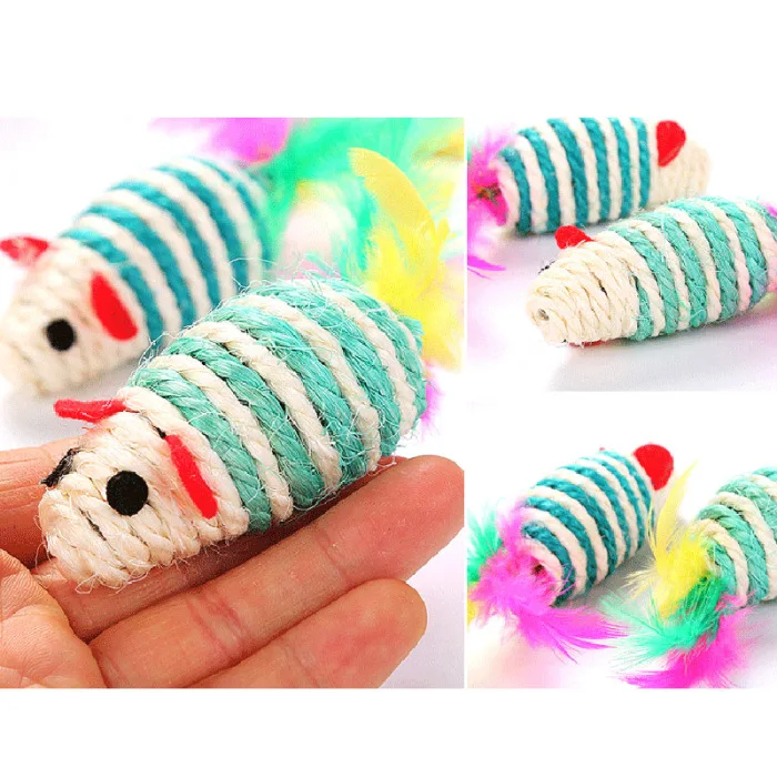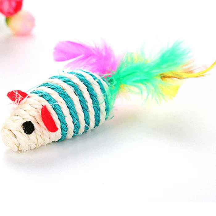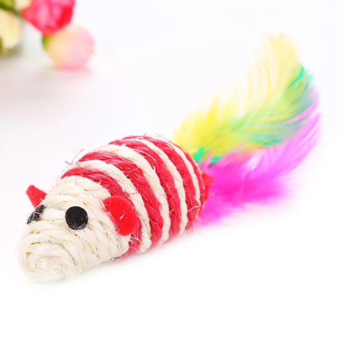 2. Цветная мышь с пером для кошек для жевания, царапин, чистки зубов и т. д.