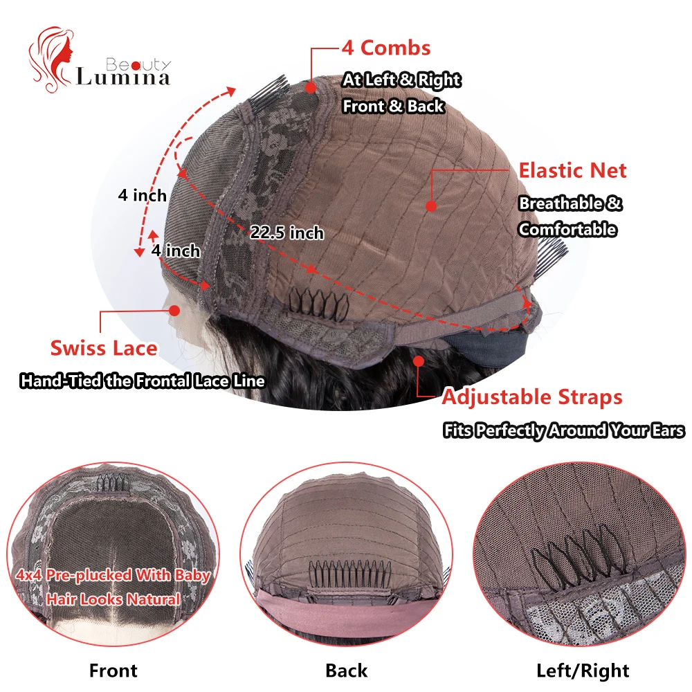Размер шнурка: 4x4 парик с закрытием шнурка, парики из человеческих волос
