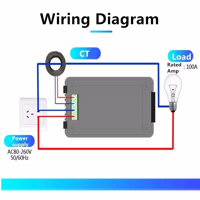 AC 6in1 220V 100A однофазный цифровой Панель Амперметр вольт ватт кВтч Мощность измеритель коэффициента мощности с Разделение CT