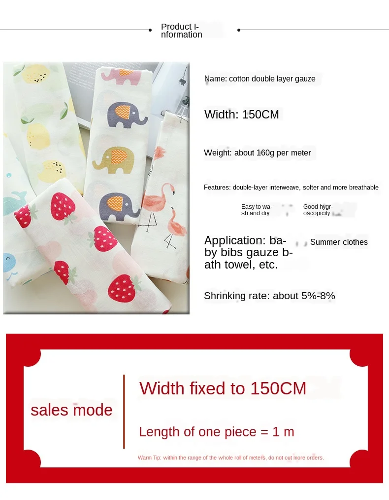 Двухслойная газовая ткань, Детские хлопковые подгузники, детская одежда, банное полотенце с мультяшным принтом, хлопковая ткань, чистый хлопок
