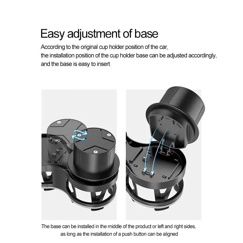 Подставка для автомобильных бутылок широко подходит для большинства типов автомобилей. Его регулируемая Нижняя база широко подходит для различных видов автомобильных оригинальных стаканчиков.