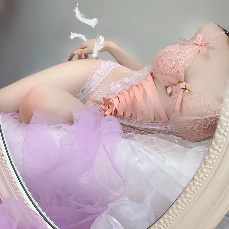 Женское сексуальное нижнее белье, милый бант на боди, пижама с цветочным кружевом, с вырезом, женское эротическое нижнее белье черного, розового цвета, без рукавов, с V-образным вырезом, тонкий ночной костюм