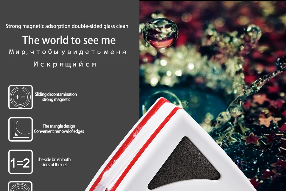 1. Подходит для большинства стекол. 2. Двухсторонняя конструкция, прочная магнитная, более быстрая очистка, более эффективная, может быстро очистить стеклянную поверхность, получить в два раза результат всего за половину усилия. Наконец, вы можете приклеить абсорбирующую ткань к окну для очистки и высушить окно. 3. Используется для раздвижных дверей, окон, душевых экранов, зеркал, любых стеклянных поверхностей.