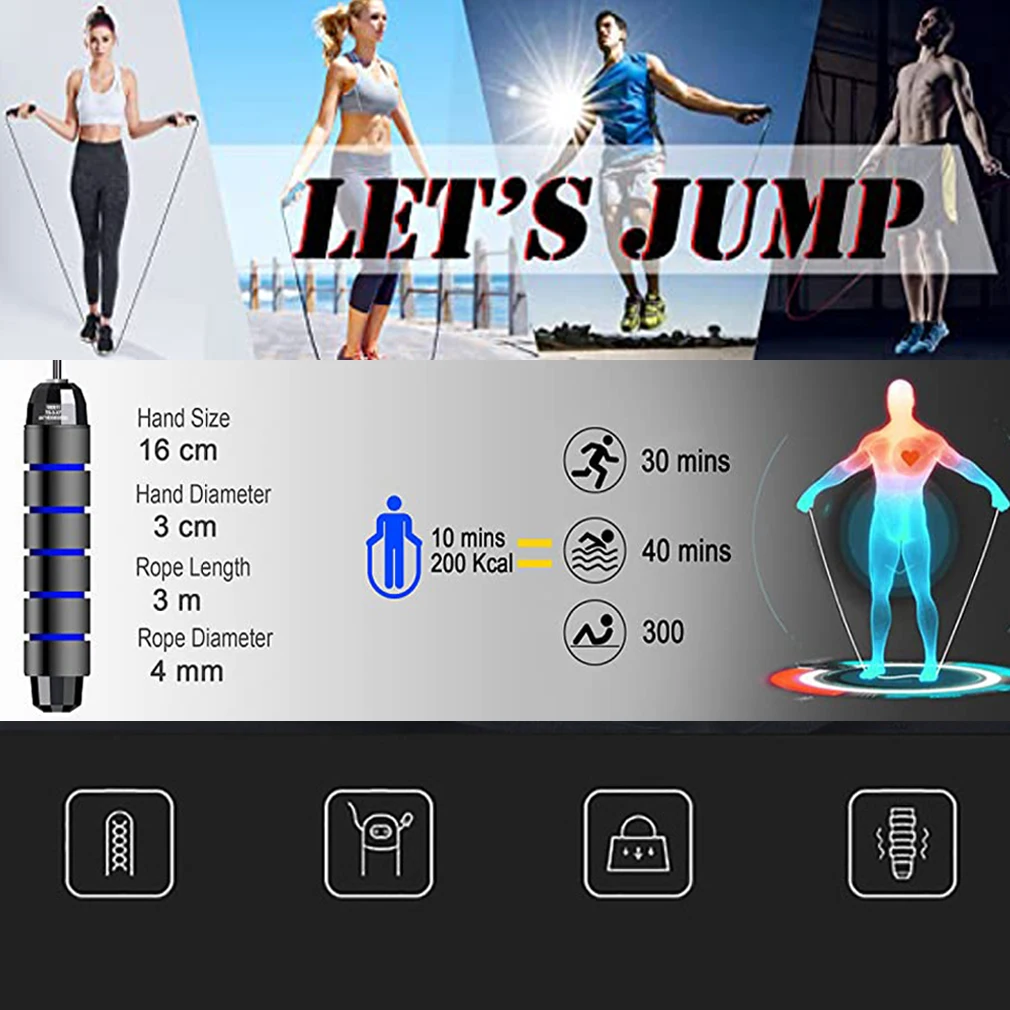 Описание: Встроенный трос из ПВХ-плетеный стальной трос покрыт ПВХ, который отличается прочностью и гладкостью, обеспечивает максимальный срок службы и позволяет избежать растрескивания или поломки. Гладкая и не запутывается! -Высококачественные шариковые подшипники обеспечивают плавное и быстрое вращение скорости, избегая скручивания, намотки или сгибания, как и другие фитнес-ролихи, приносит вам идеальное Упражнение скакалки. Удобные противоскользящие ручки-эргономичные ручки, покрытые 6 дюймов мягкие ПВХ пена с эффектом памяти, дышащие, удобные и non-slip для того, чтобы сделать скакалок удобно держать в руке и носить с собой. Регулируемая длина-быстро и легко регулируется от 9 футов до желаемой длины в течение нескольких минут! Подходит для всех возрастов (взрослых, мужчин, женщин, детей, детей, мальчиков и девочек) и всех уровней опыта. Идеально подходит для занятий фитнесом, кардио-тренировок, упражнения с прыжками, крестообразной формы, прыжков, ММА, бокса, скоростных тренировок, укрепления бедра и предплечья, тренировки ног и тренировки на выносливость.