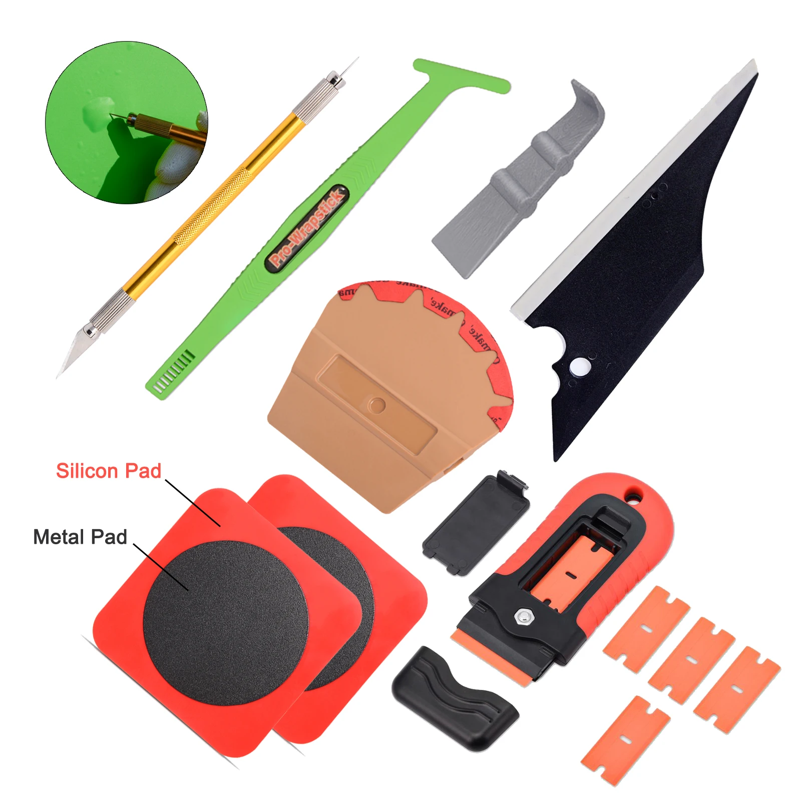 Посылка включает в себя: 1 x ручка для ножей с двойным наконечником Магнитный скребок (72 °, материал TPEE)-1 шт. 2 х крепежная панель Магнитный скребок (Веерообразный)-1 шт. Скребок 90 градусов-1 шт. 1 x бритвенный скребок (с 5 пластиковыми лезвиями) 1 х ракель для захвата Особенности 1. Ручка для ножей: полезна для высвобождения пузырьков воздуха и резки виниловой пленки. 2. Ракель с длинной ручкой: 72 ° делает его пригодным для многих упаковочных работ. 3. Крепежная панель: легко соединяет магнит и гладкая поверхность, для эффективной работы по резке пленки. Применение 1-инструмент для виниловой упаковки автомобиля, инструмент для тонировки окон, инструмент для установки с автоматической защитой, инструмент для бытовой очистки. 2 лет клея/наклейки, углеродное волокно устройство монтажа фильмов, деколь/обои оттенок Ракель, Воздушная пузырчатый ручка, водный стеклоочиститель.