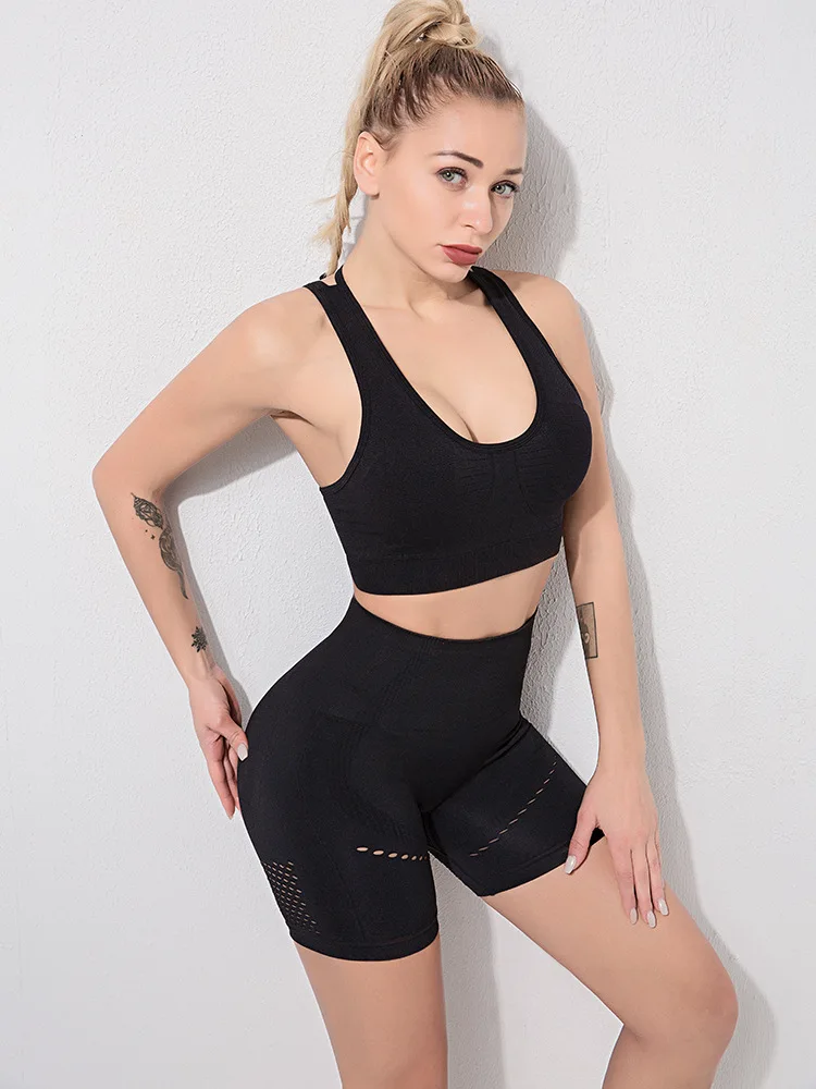 Комплект из 2 предметов, бесшовные шорты для спортзала, спортивный бюстгальтер для женщин, шорты для спортзала с высокой талией, спортивный комплект для йоги, Женский комплект для занятий фитнесом, спортивная одежда, комплекты для упражнений