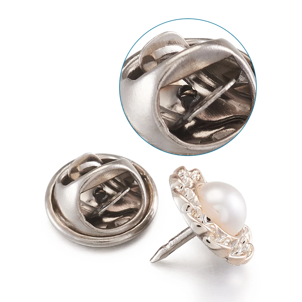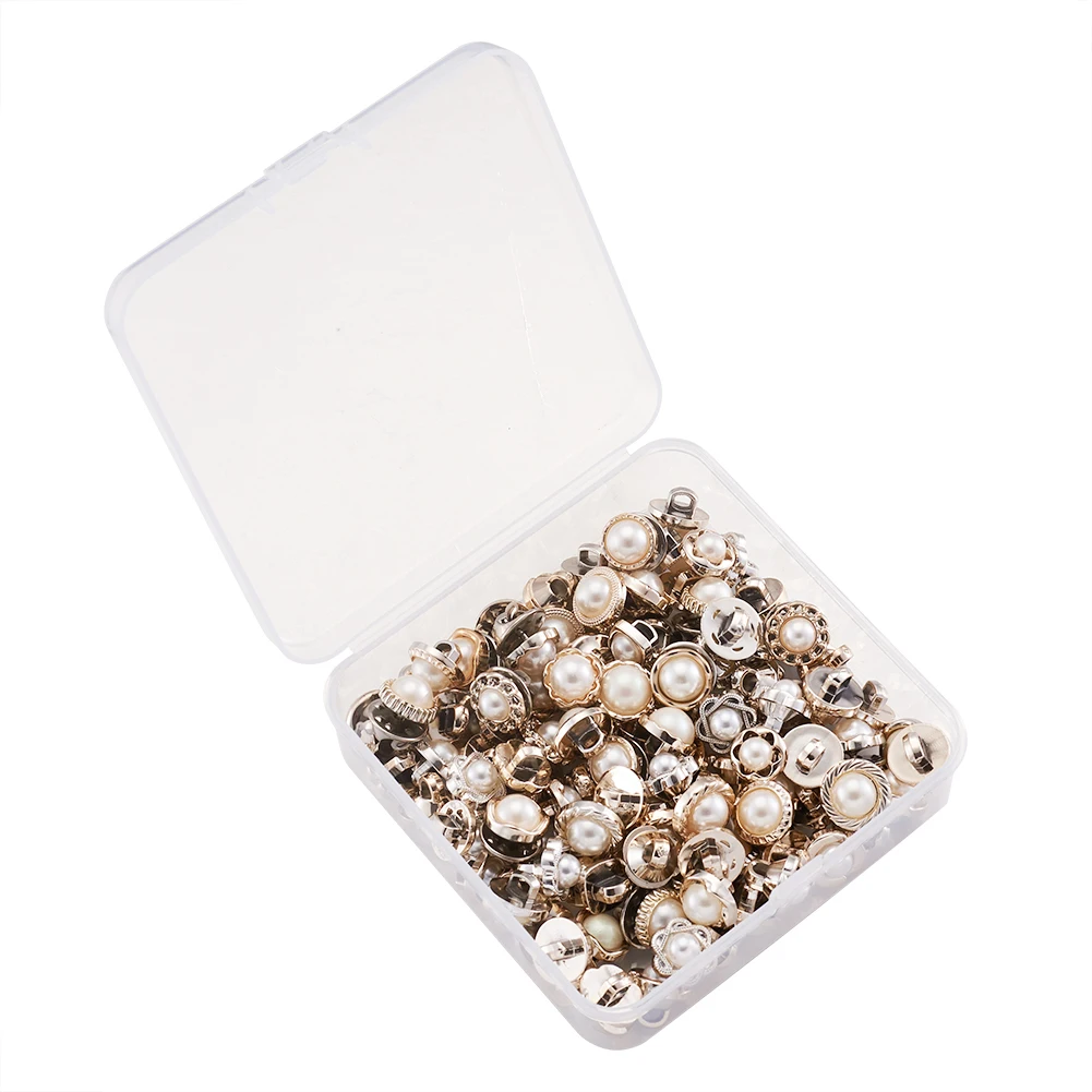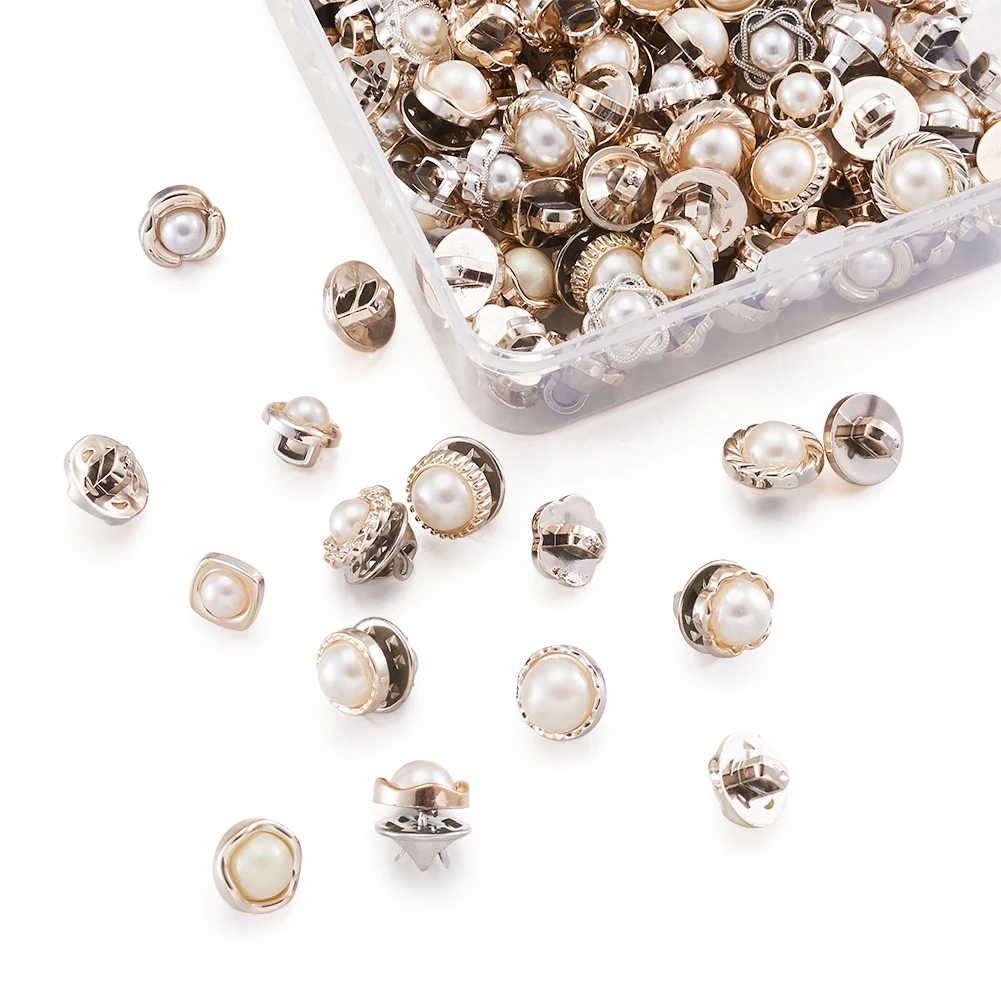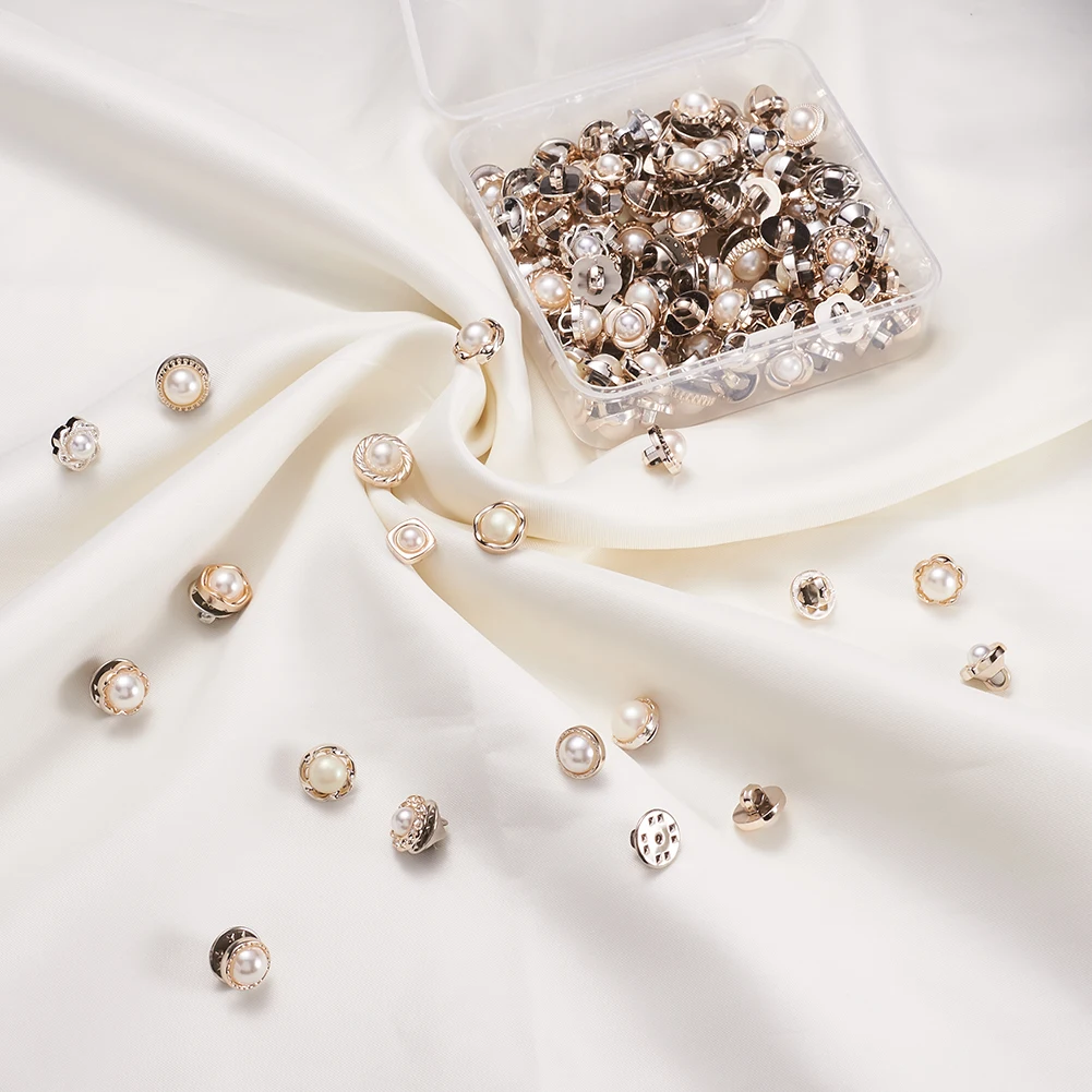1Box Safety Brooches and 1-Hole Buttons Sets Iron Pins for Jewelry Findings DIY Making Imitation Pearl Style White