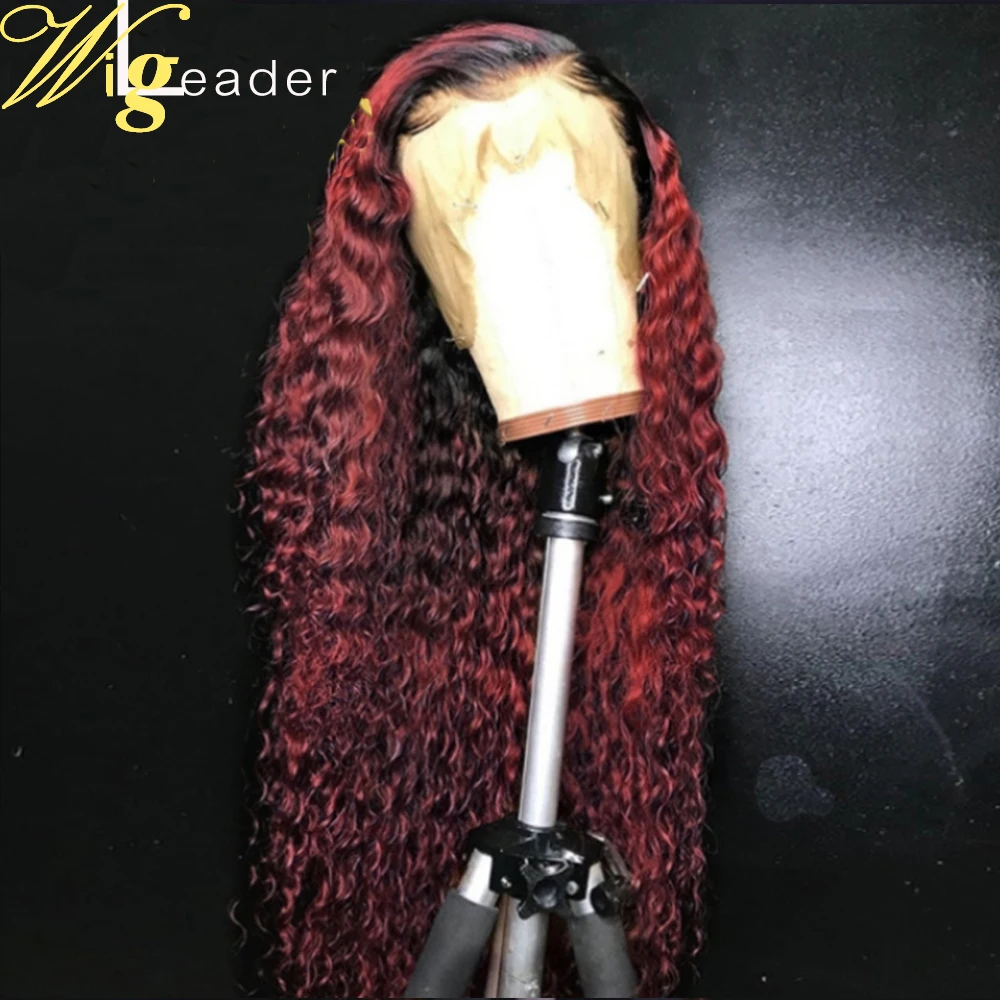 Wigleader перуанские Реми человеческие волосы, фронтальные парики, предварительно выбранные 1b/красные вьющиеся 13x6 кружевные передние парики, Реми волосы