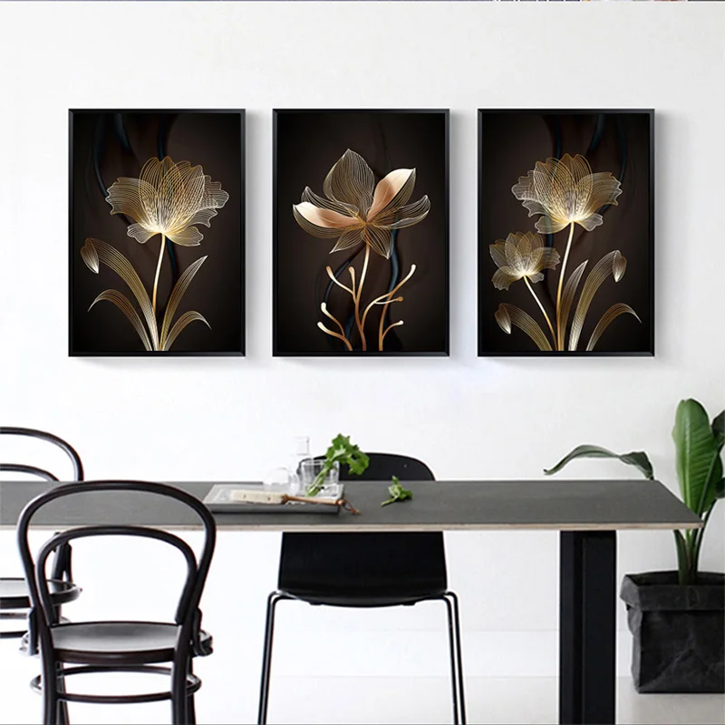 Abstract Golden Flower Plant Picture Wall Poster Modern Style Canvas Painting Posters and Prints Living Room Unique Decoration