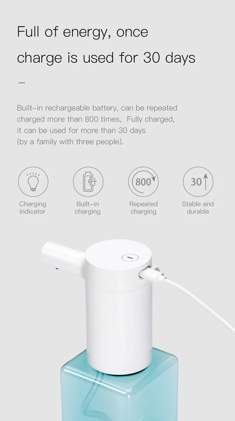 Бесконтактный Датчик Насоса Пены: микро автоматический дозатор мыла пены автоматический дозатор с точным инфракрасным датчиком. Отсутствие контакта является эффективным способом остановить распространение бактерий. Два режима может быть включен: больше компонентов время 1,2 секунд; Меньшая компонентов время 0,5 секунд. Перезаряжаемая батарея: Встроенная перезаряжаемая батарея 1500ма, с сильной мощностью, может работать в течение 3 месяцев на одной зарядке. Микрозащита окружающей среды позволяет сэкономить деньги. Съемная головка насоса для пены: Micro-это новый дозатор для мыла из пены, который можно использовать с различными бутылками для мыла. Когда узкое место соответствует микро, вы можете использовать различные пены мыла (мытье посуды/Ручная стирка/гель для душа/шампунь/другой бренд моющего средства). Водонепроницаемый IPX-7: высокая степень водонепроницаемости, может предотвратить попадание мыла или воды из-за коррозии печатной платы. Идеально подходит для вашей кухни или ванной комнаты, подходит для небольших раковин или столешниц. Легко открывается для кормления: затяните бутылочку, чтобы сделать подачу проще и быстрее. Есть меньше одноразовых бутылок и более экологически чистых.