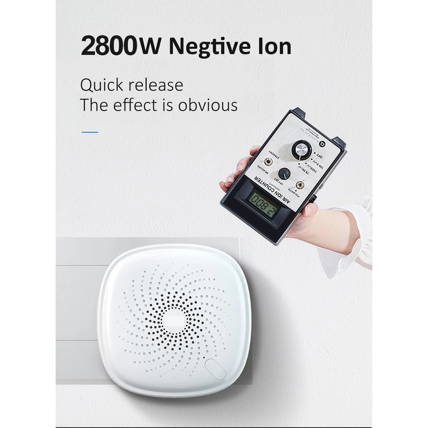 3 Working Mode --- One press, release 28million negative ion capture all micro paticles and dust mites, allergens and pollutants provide fresh air and healthy living space. Two press start o-zone release, the most powerful oxidant, not onlyu eliminate order formaldehyde, but also prevents mold from growing. keep healthy breath. Three press o-zone+negtive ion, powerful and fast remove air pollutions.