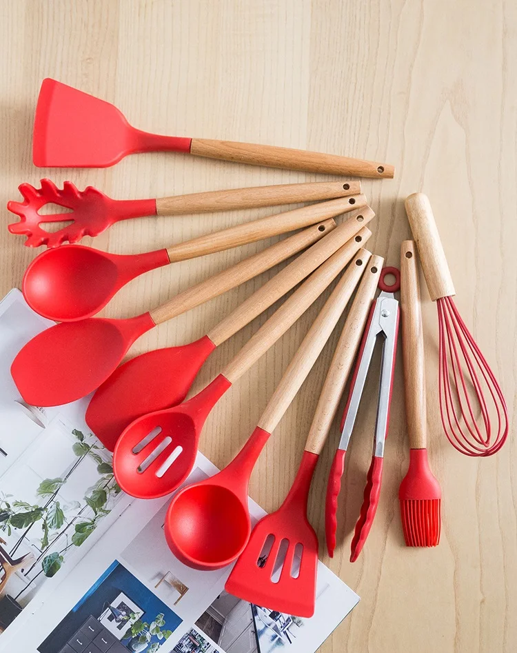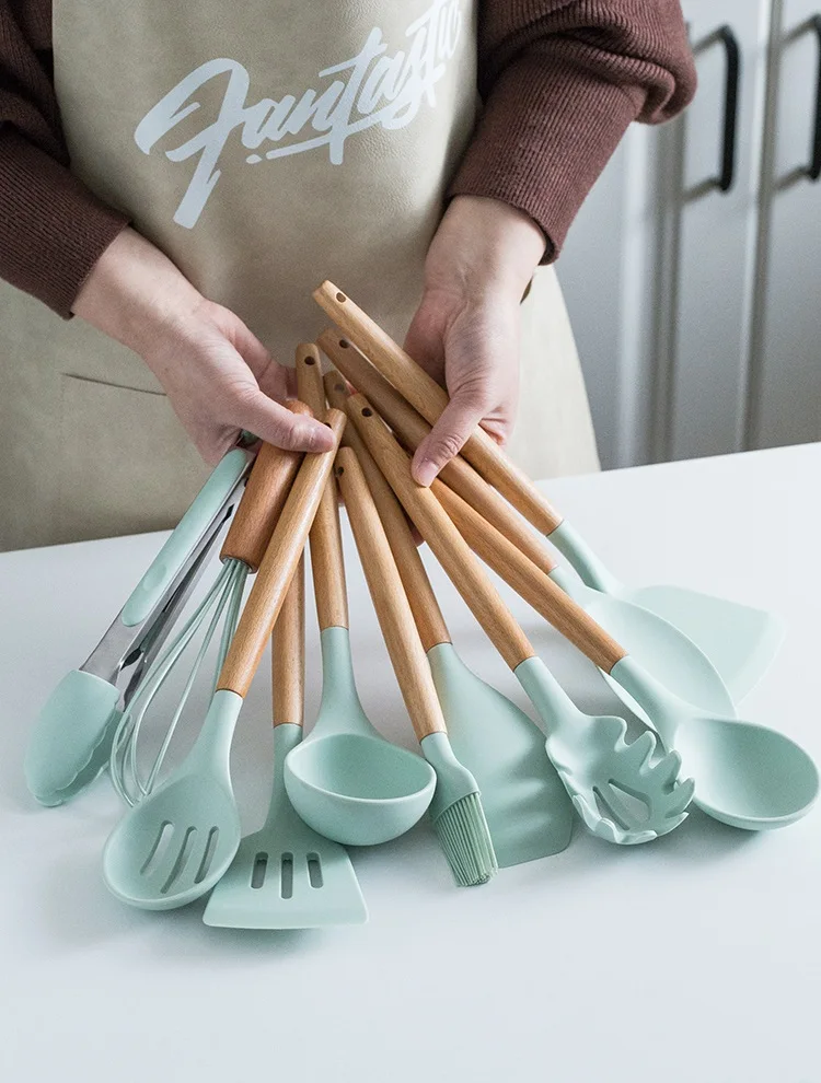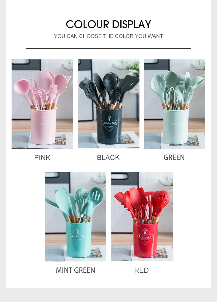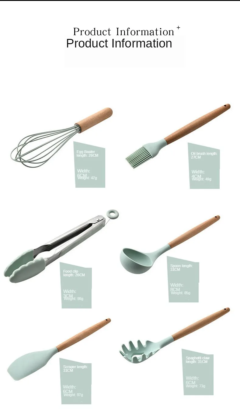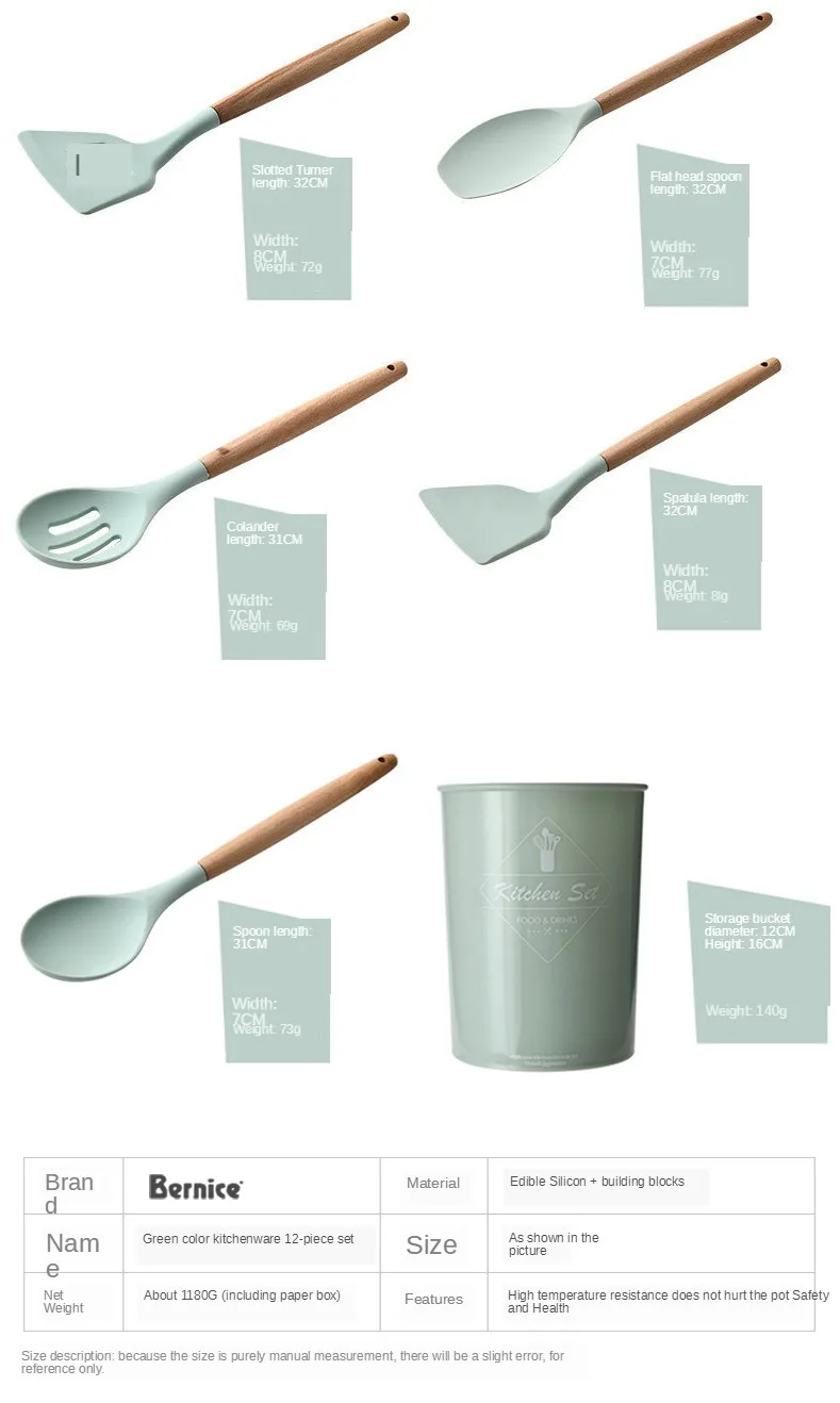 Add the product to the cart and pay attention in advance so that you can get the first delivery and small gifts! 9 / 10 / 12 pcs Silica Gel cooker set non-stick spatula wooden handle cooking set with storage box kitchen tools Silicone cutlery sets are kitchen helpers, perfect for all types of food and cooking and kitchen accessories, stir fries, whipped cream, butter, ice cream, etc. . Includes SPATULA, BAS brush, spatula, rounded edge turning machine, ladle, straight edge turning machine, spoon, tongs, pasta fork, perfect for all types of food and cooking. To all dear customers: 1. We ship around the world, we will pack everything carefully before shipment. These goods are in stock and will be delivered within 24 hours. Logistics and delivery time: Send Standard Express, tracking information throughout. 4. Return goods for free Return it within 15 days for any reason